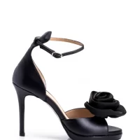 Πέδιλο σε δέρμα με μπαρέτα στον αστράγαλο και διακοσμητικό λουλούδι,10 πόντους τακούνι,2 πόντους φιάπα.Ελληνική κατασκευή