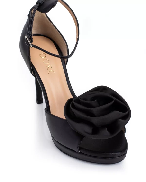 Πέδιλο σε δέρμα με μπαρέτα στον αστράγαλο και διακοσμητικό λουλούδι,10 πόντους τακούνι,2 πόντους φιάπα.Ελληνική κατασκευή